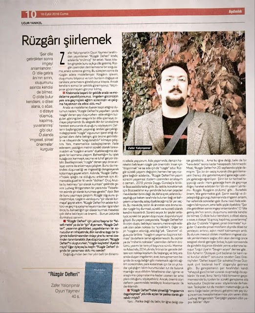 18 Eylül 2016, Aydınlık Gazetesi Kitap Eki